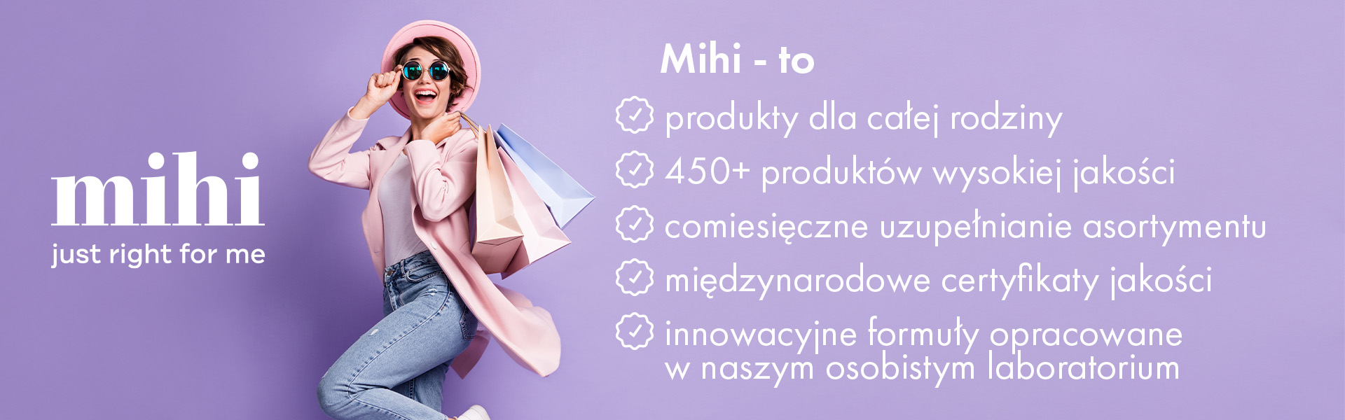 Czystość mojego domu, zdrowie i uroda – z Mihi stało się to dla mnie nie luksusem, ale przystępną rzeczywistością! Produkty ekologiczne, bezpieczne dla człowieka i środowiska. Szeroki asortyment, który zaspokoi każdy gust i budżet. Łatwość składania zamówienia i szybka dostawa. Uwierz mi, gdy raz spróbujesz, nie będziesz mógł odmówić – szybko przyzwyczajasz się do dobrych rzeczy!